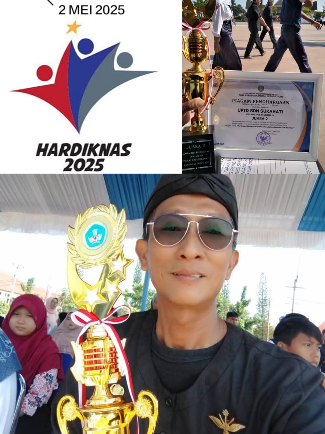 Penyerahan Piala dan Piagam Penghargaan serta uang pembinaan diberikan secara langsung oleh Bupati Lucky Hakim dalam momen Upacara Hardiknas Tahun 2025 di Alun-alun Kabupaten Indramayu. Hadir dalam acara tersebut 6 sekolah dari masing-masing tingkat TK, SD dan SMP sebagai Finalis. Perwakilan dari UPTD SDN Sukahati H. Kambon Suherman, S.Pd.,M.M. dan menerima Piala dan Piagam.